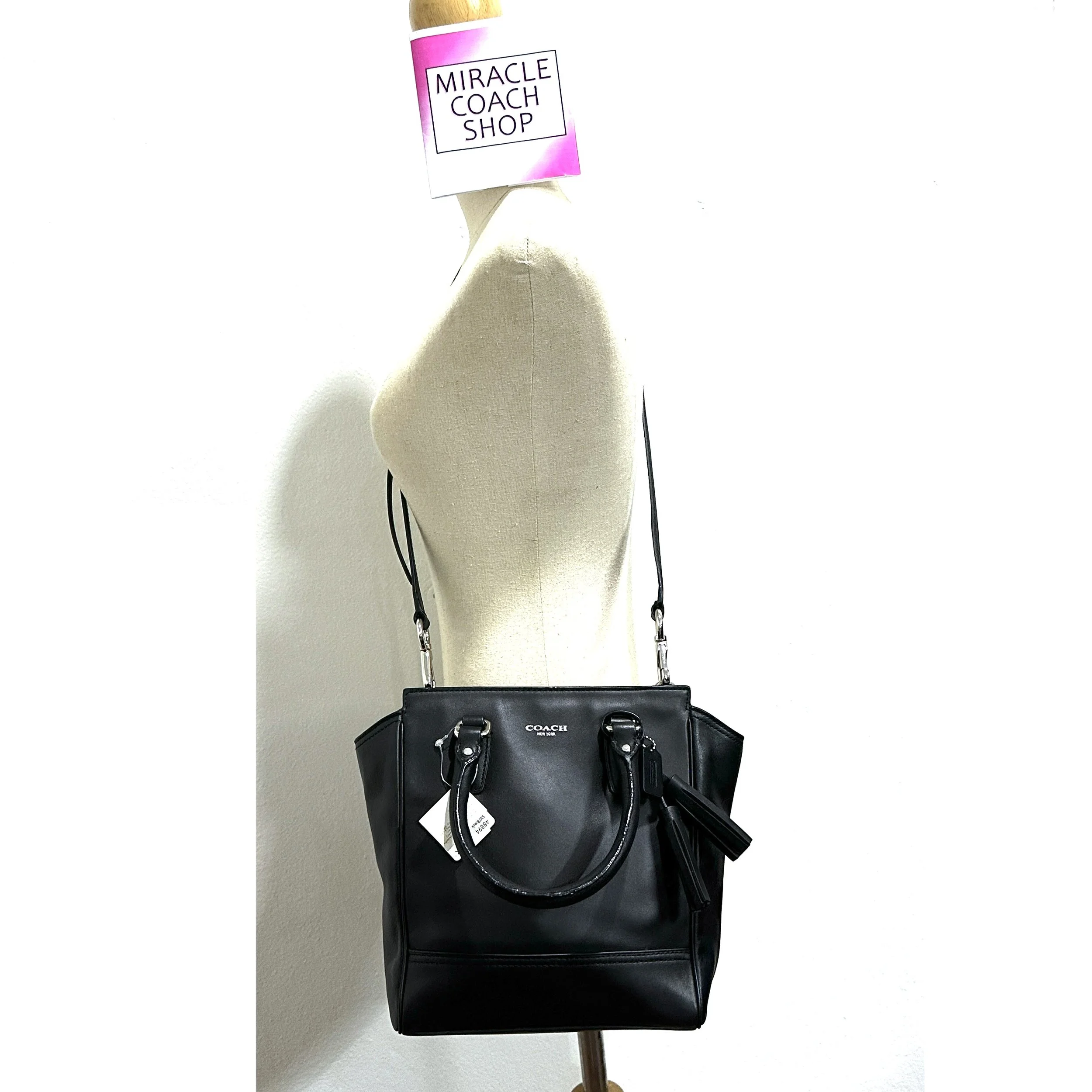 กระเป๋าถือ COACH ของแท้ มือ 1 รุ่นหรูจาก Shop หนังแท้ หนังนิ่ม มีสายยาว ทรงสวย รุ่นหายาก มีตำหนิ ลดราคาล้าง stock COACH 48894 MADISON LEGACY MINI TANNER LEATHER CROSSBODY BAG Black CLEARANCE