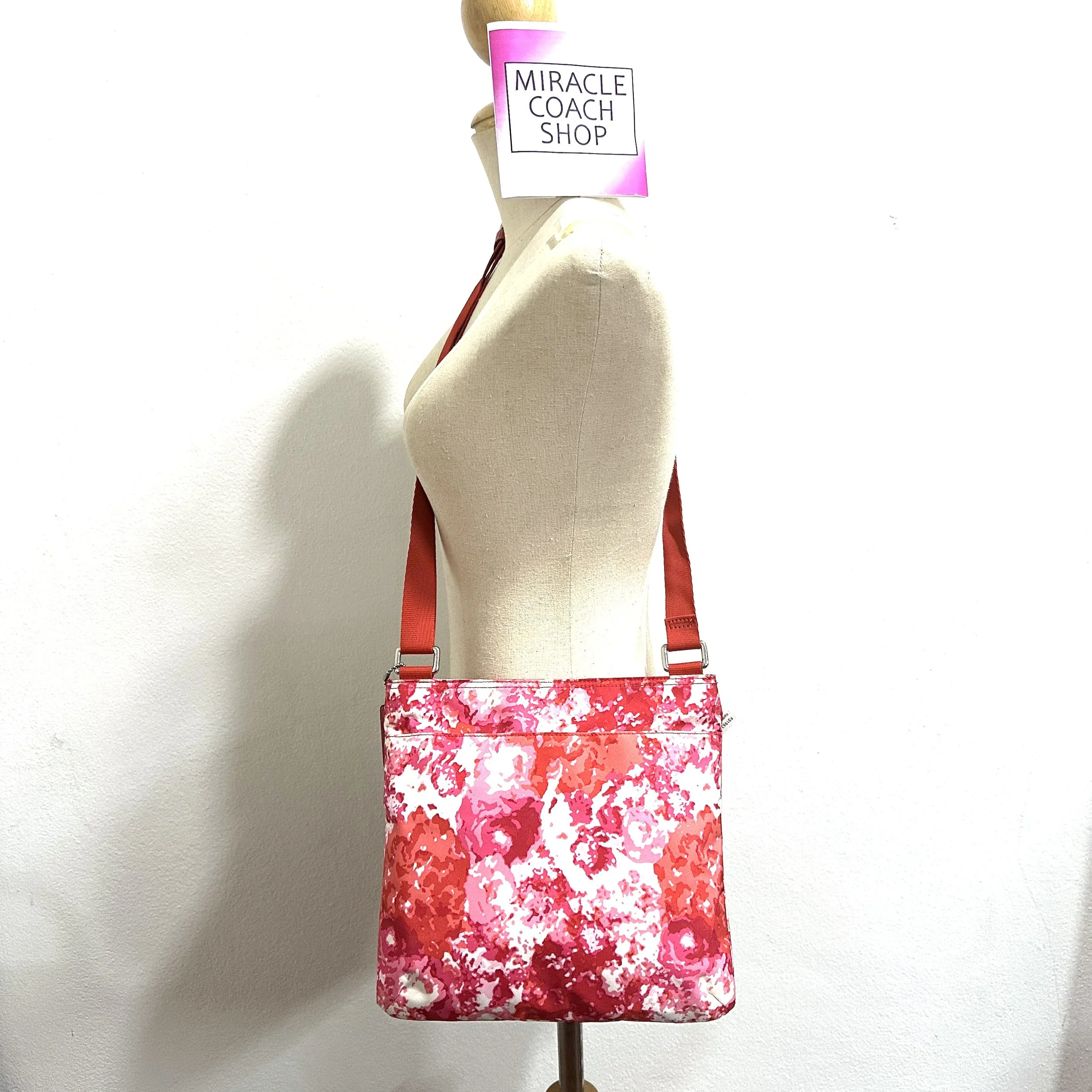 กระเป๋าสะพาย COACH แท้ ผ้า Nylon พิมพ์ลาย ขอบหนังแก้ว ช่องเยอะ เบา สายผ้า ปรับความยาวสายได้ สวยคุ้ม COACH 31963 COACH GETAWAY PRINTED NYLON FILE BAG Pink สีชมพู