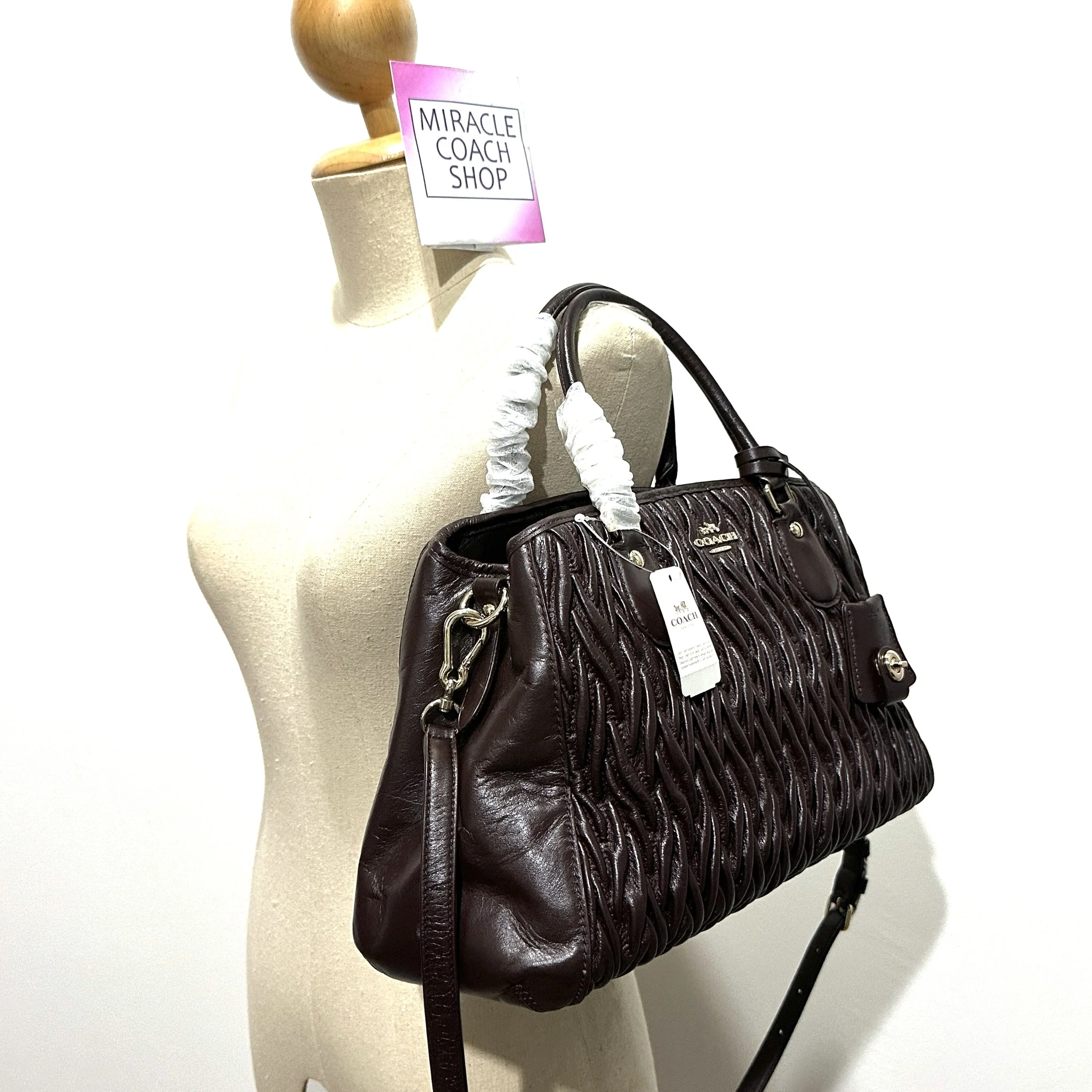 กระเป๋าถือ Coach ของแท้ มือ 1 หนังแท้ จับจีบ สวยงาม ทรงถังยอดนิยม COACH 35910 MARGOT CARRYALL IN TWIST GATHERED LEATHER Oxblood สีแดงเข้ม