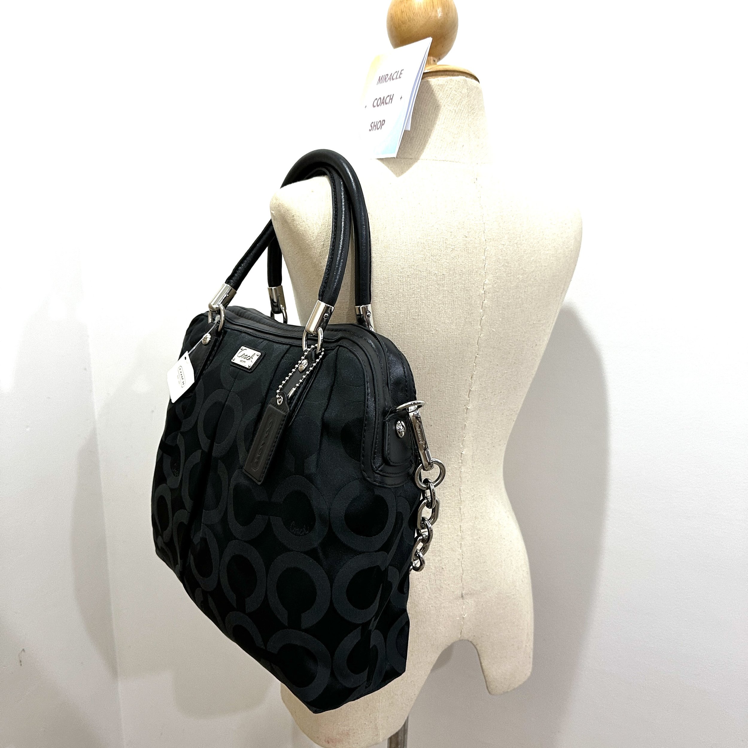กระเป๋า COACH แท้ ผ้าลาย Signature Op Art มีสายยาว ใบใหญ่ COACH 15342 KRISTIN OP ART SATEEN PLEATED SATCHEL Black