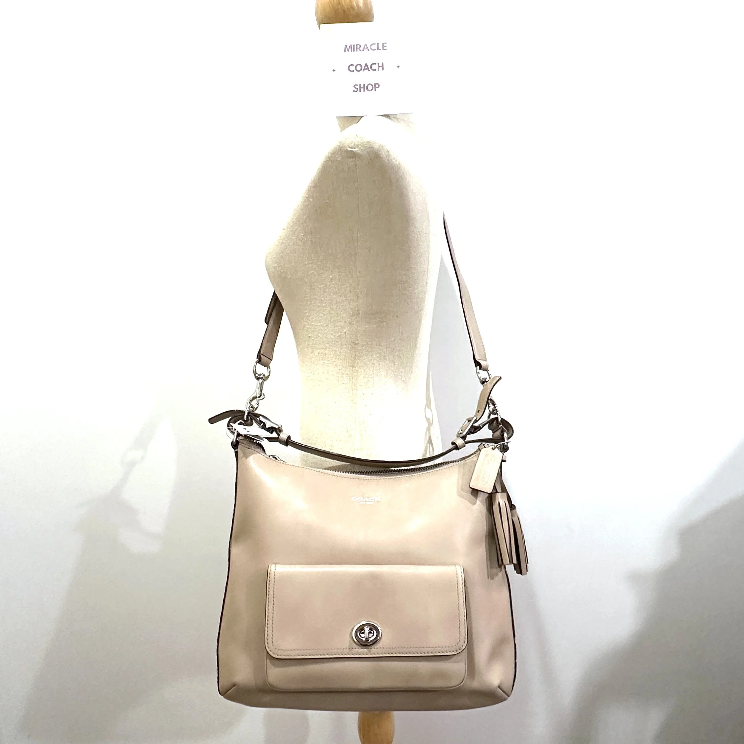 กระเป๋าสะพาย COACH แท้ รุ่นหรูจาก Shop หนังแท้ ทรงสวย มีสายยาว สะพายเฉียงได้ ใช้งานง่าย COACH 22381 LEGACY LEATHER COURTENAY HOBO BAG Light Khaki